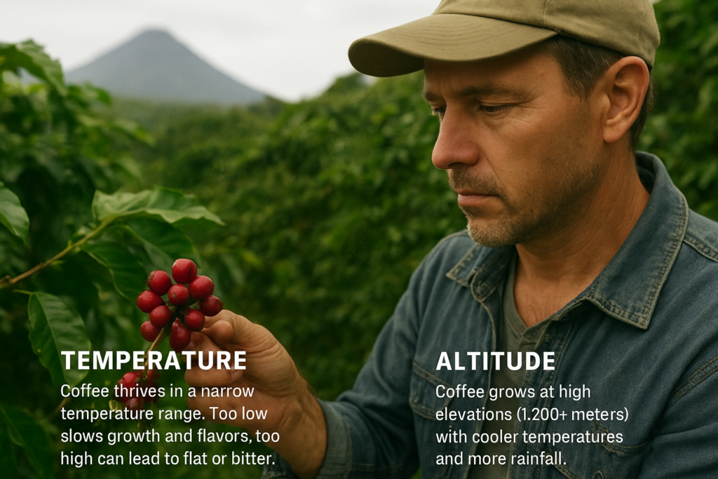 Moreover, altitude is one of the most significant environmental factors defining coffee flavor. Climate altitude effect becomes unmistakable when comparing beans grown at different elevations. Higher altitudes create cooler conditions, slowing cherry maturation and intensifying complexity. Coffees grown above 1,200 meters often feature vibrant acidity, floral undertones, and bright fruit notes. In contrast, beans cultivated at lower elevations tend to lean toward chocolatey, nutty, or earthy profiles. These flavor contrasts show why regions like Yirgacheffe and Antigua are celebrated worldwide.